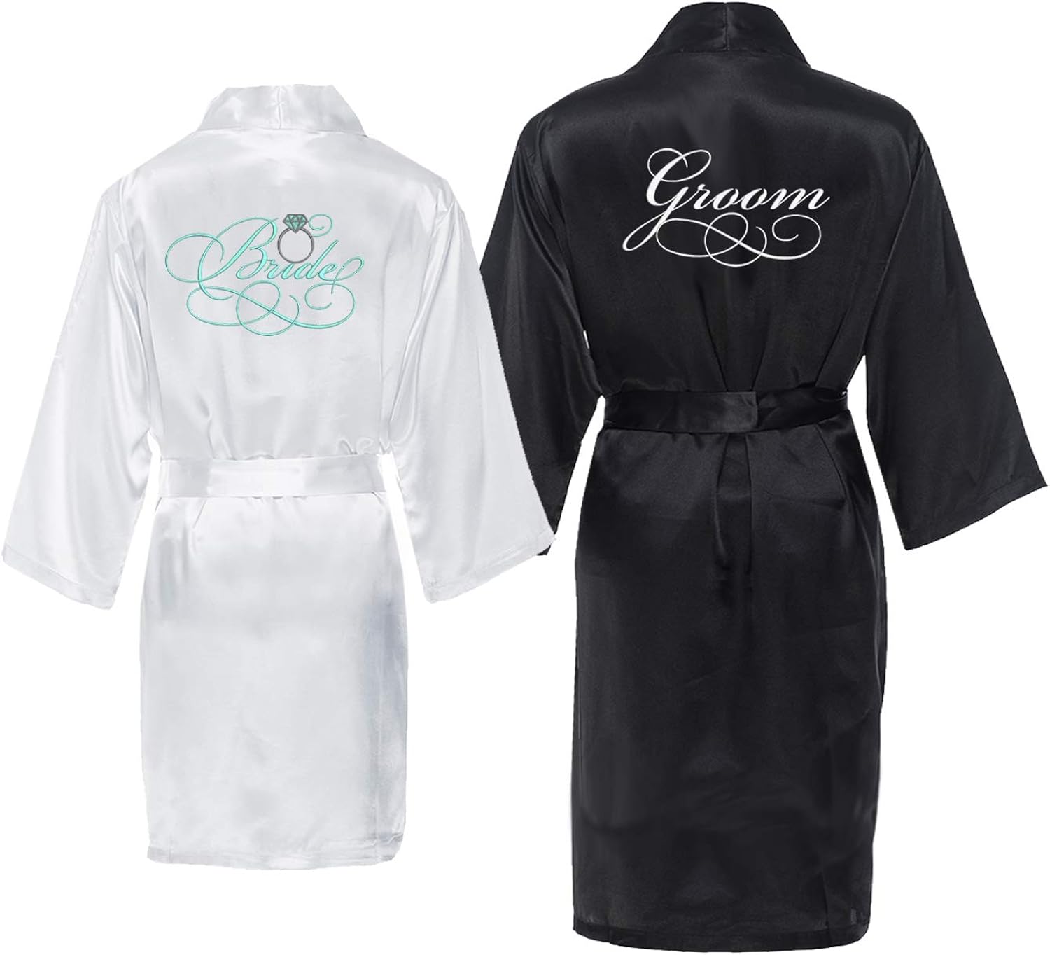 Bride And Groom Satin Robe Set Gifts For Couples Engagement Gifts Matching Wedding Robes Robin Egg Blue At Amazon Women S Clothing Store